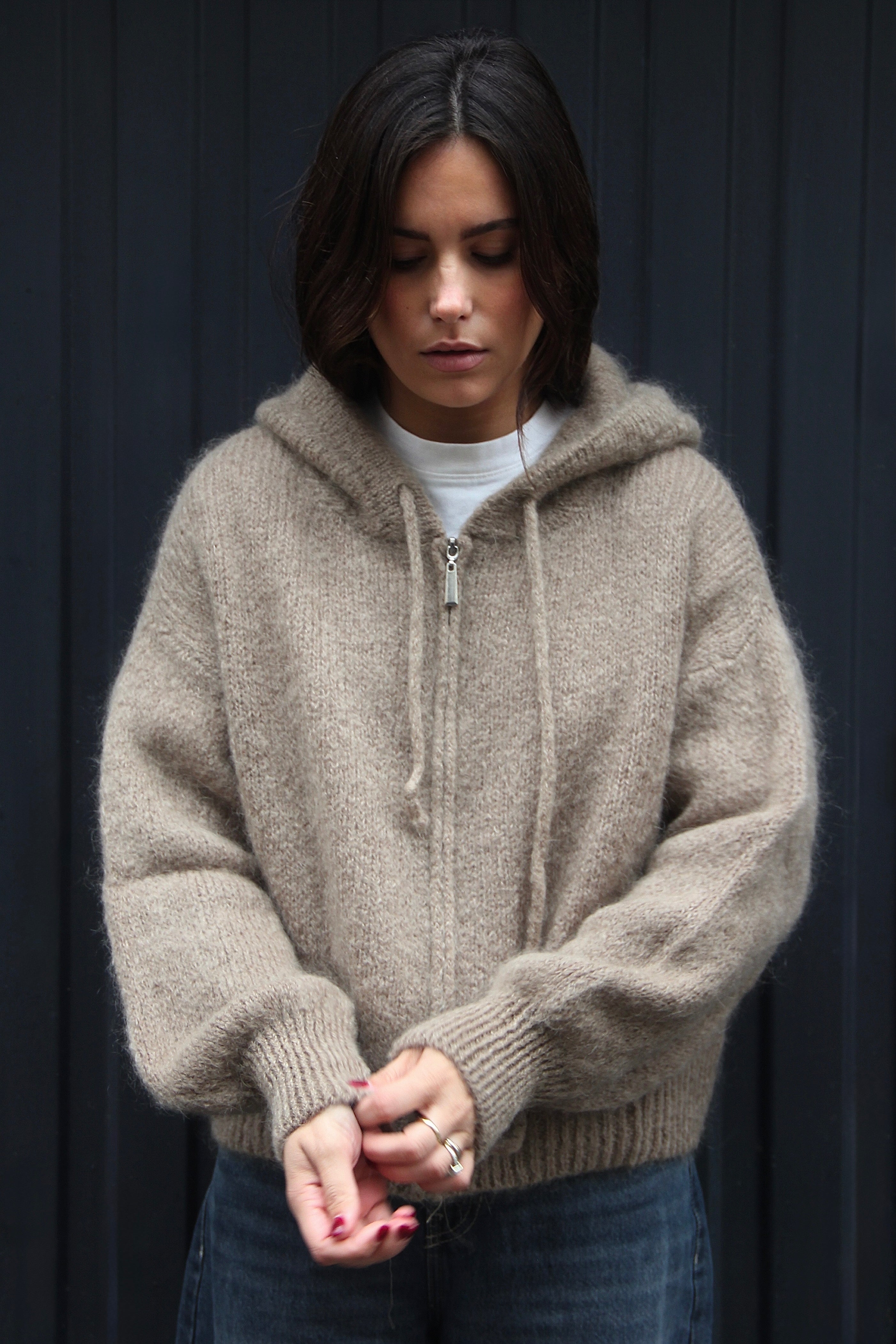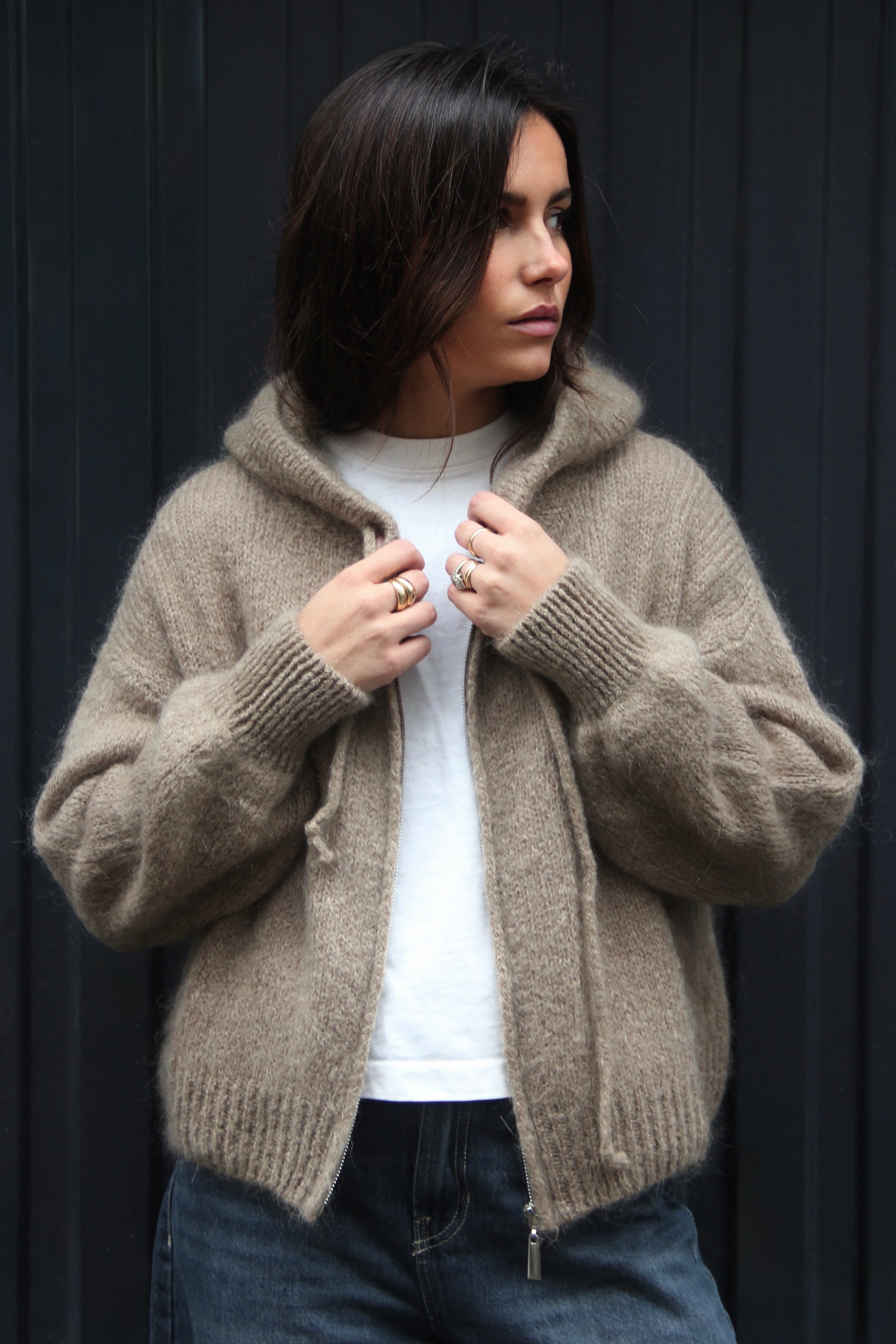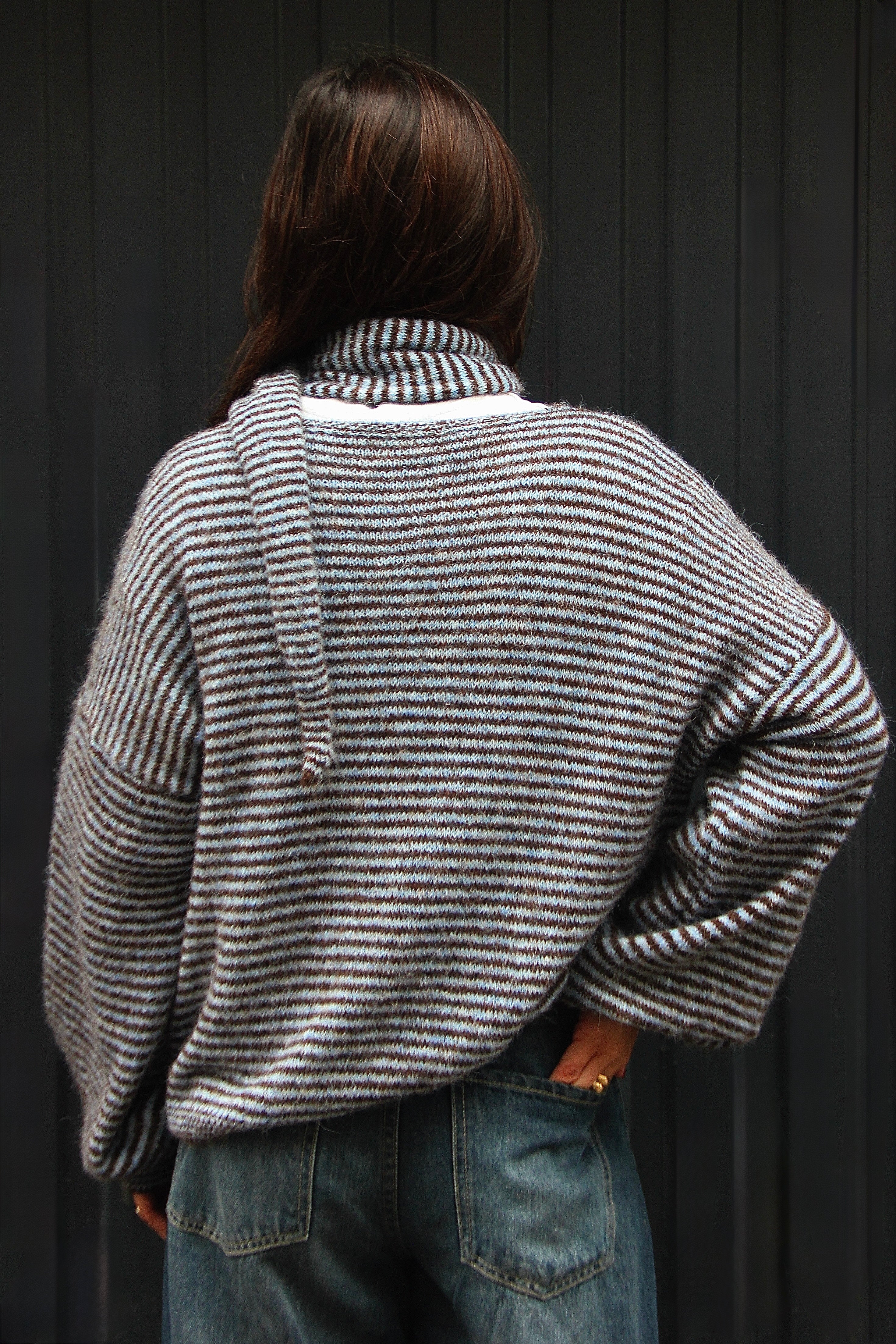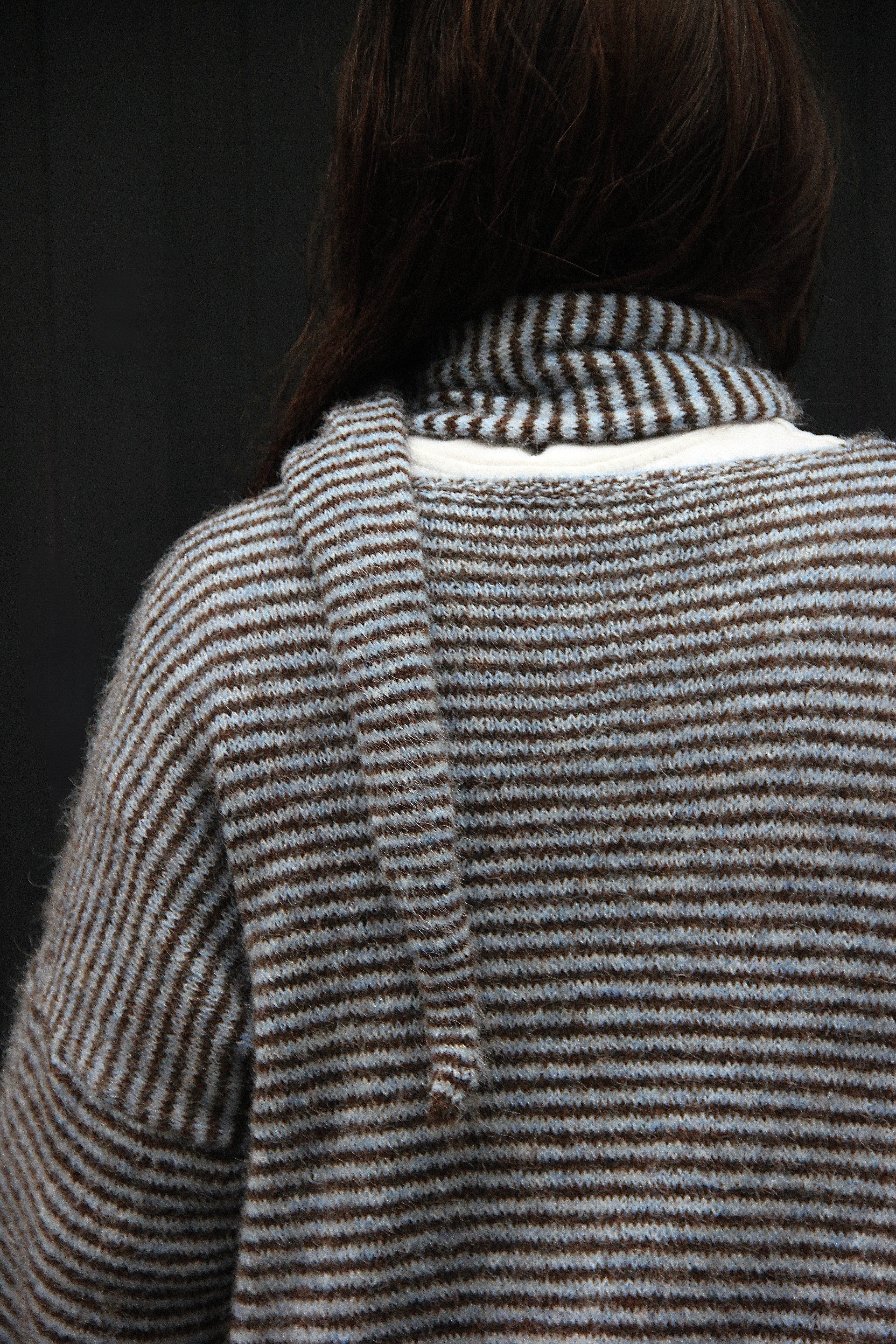 Portées en accessoire comme ici avec notre cagoule en maille rayée, elles apportent immédiatement rythme et caractère à n’importe quel look. Inspirée de l’univers du rétro sport et twistée dans une version douce et graphique, cette pièce illustre parfaitement l’équilibre entre tendance et confort.