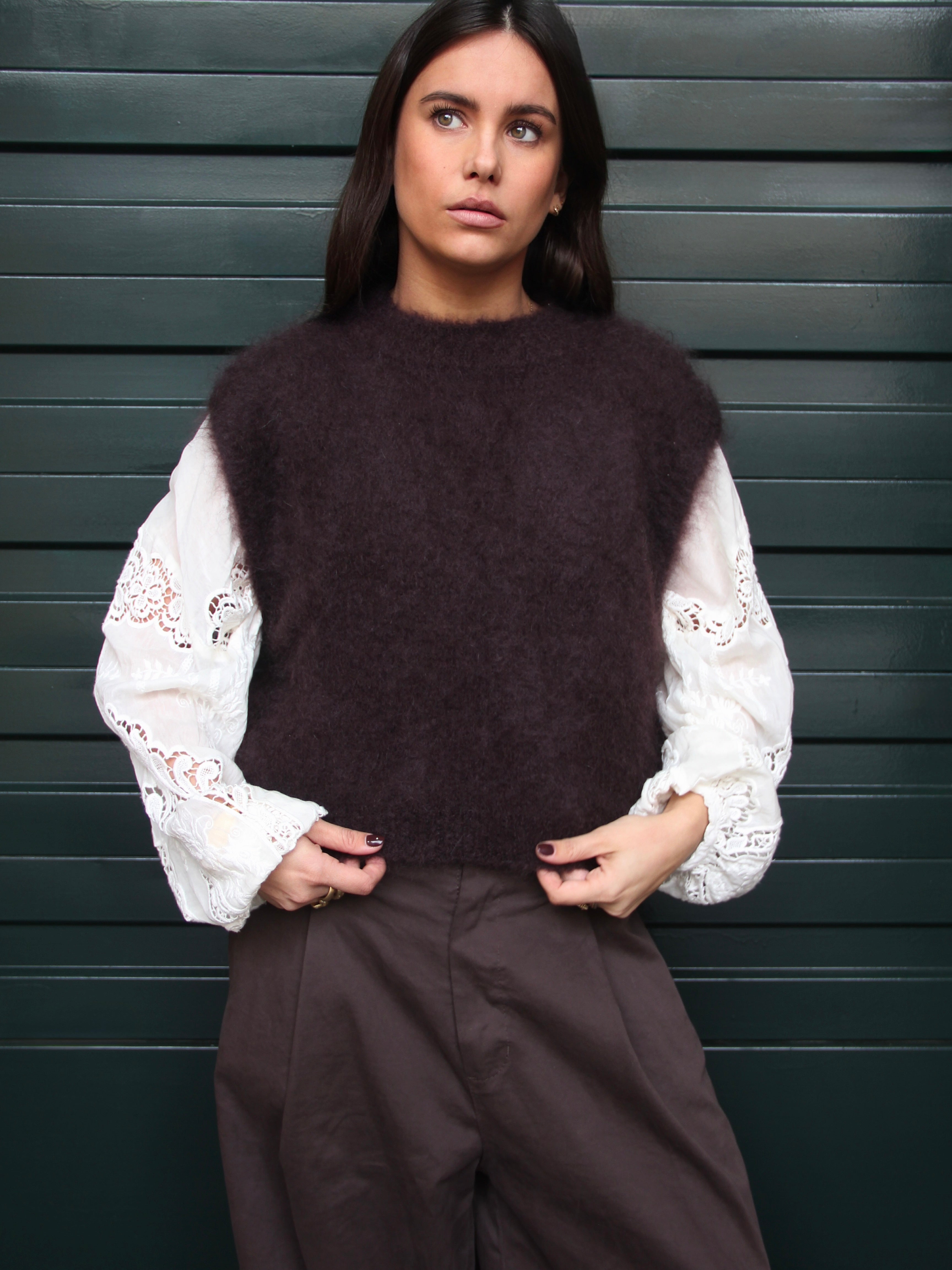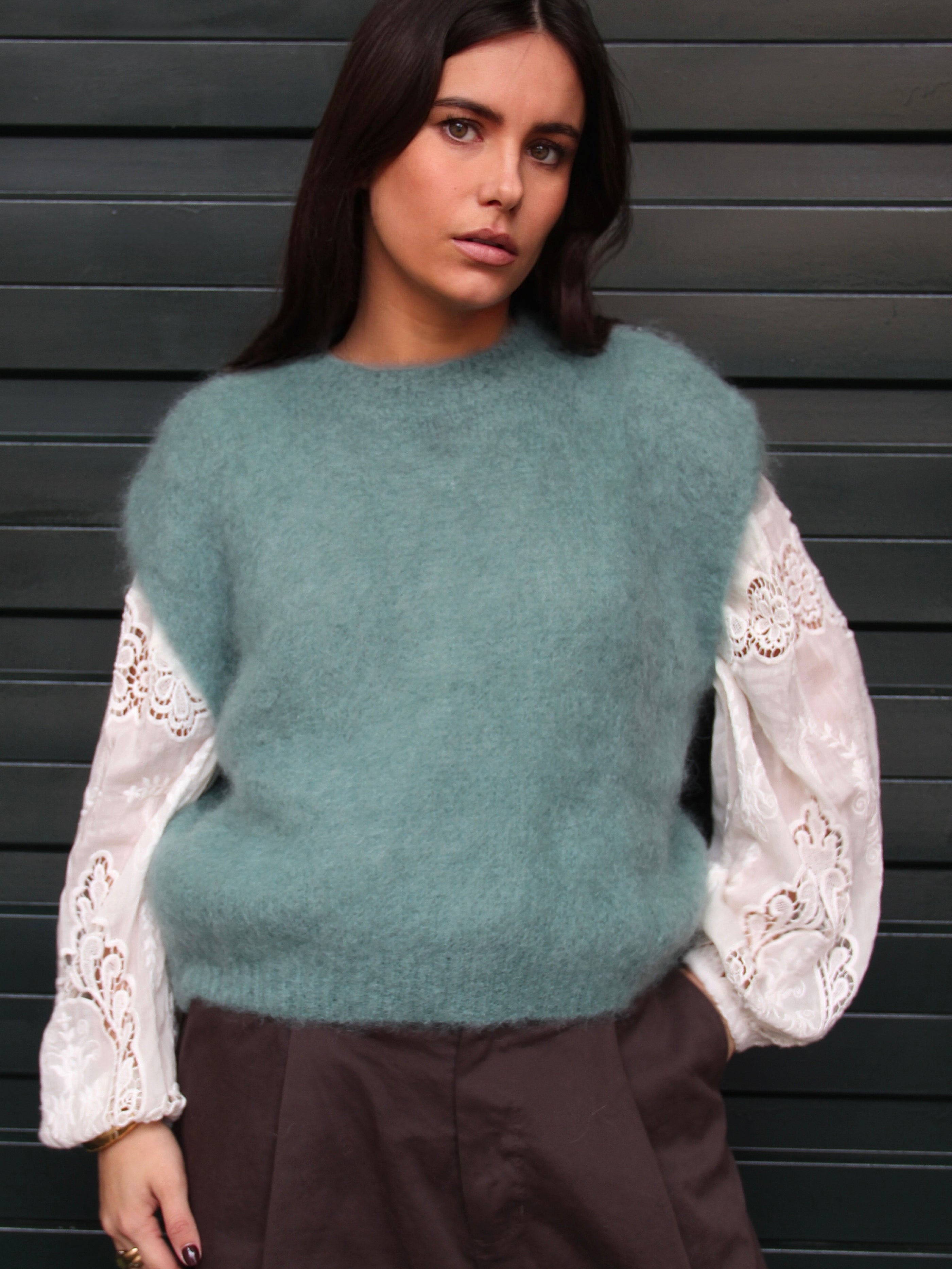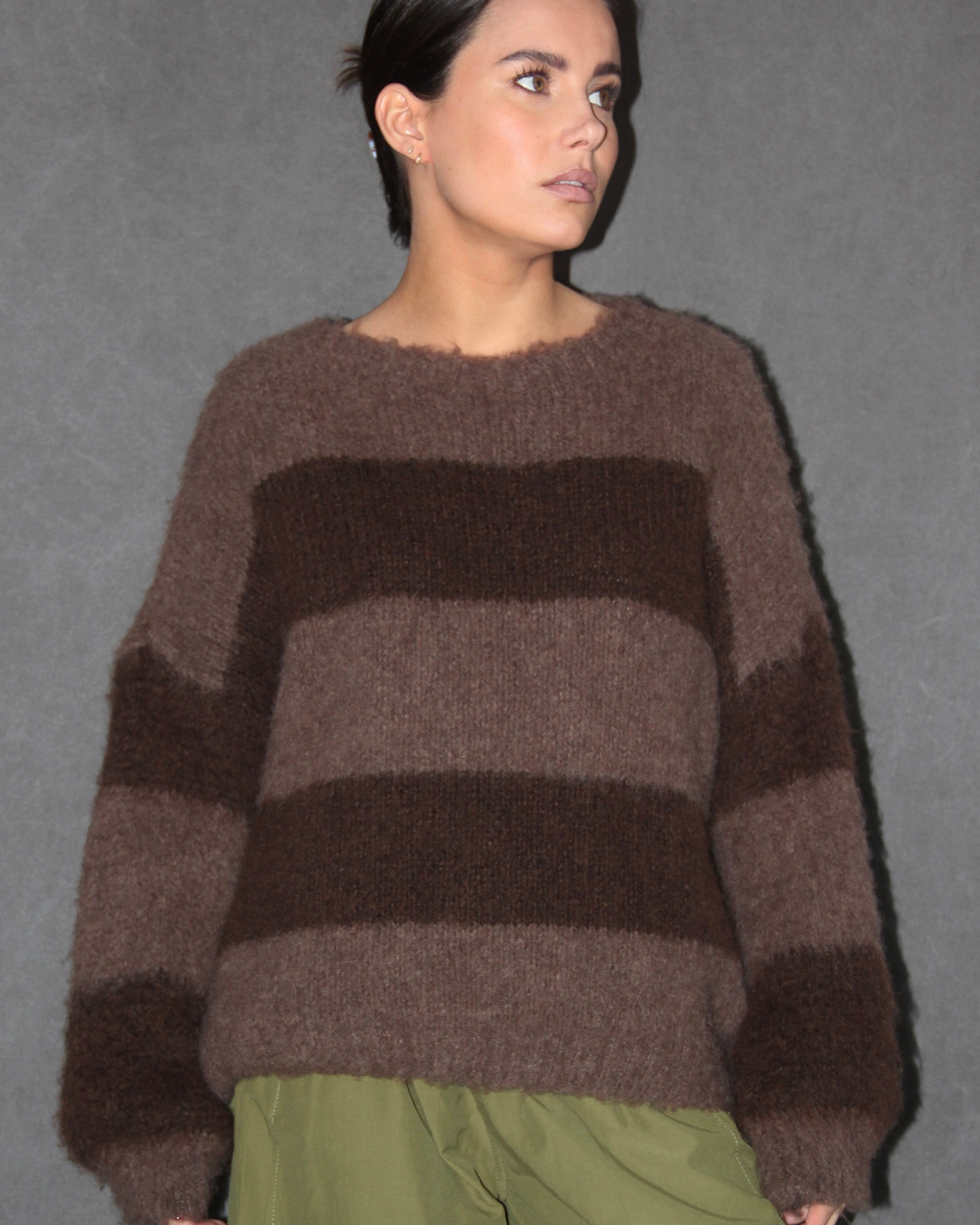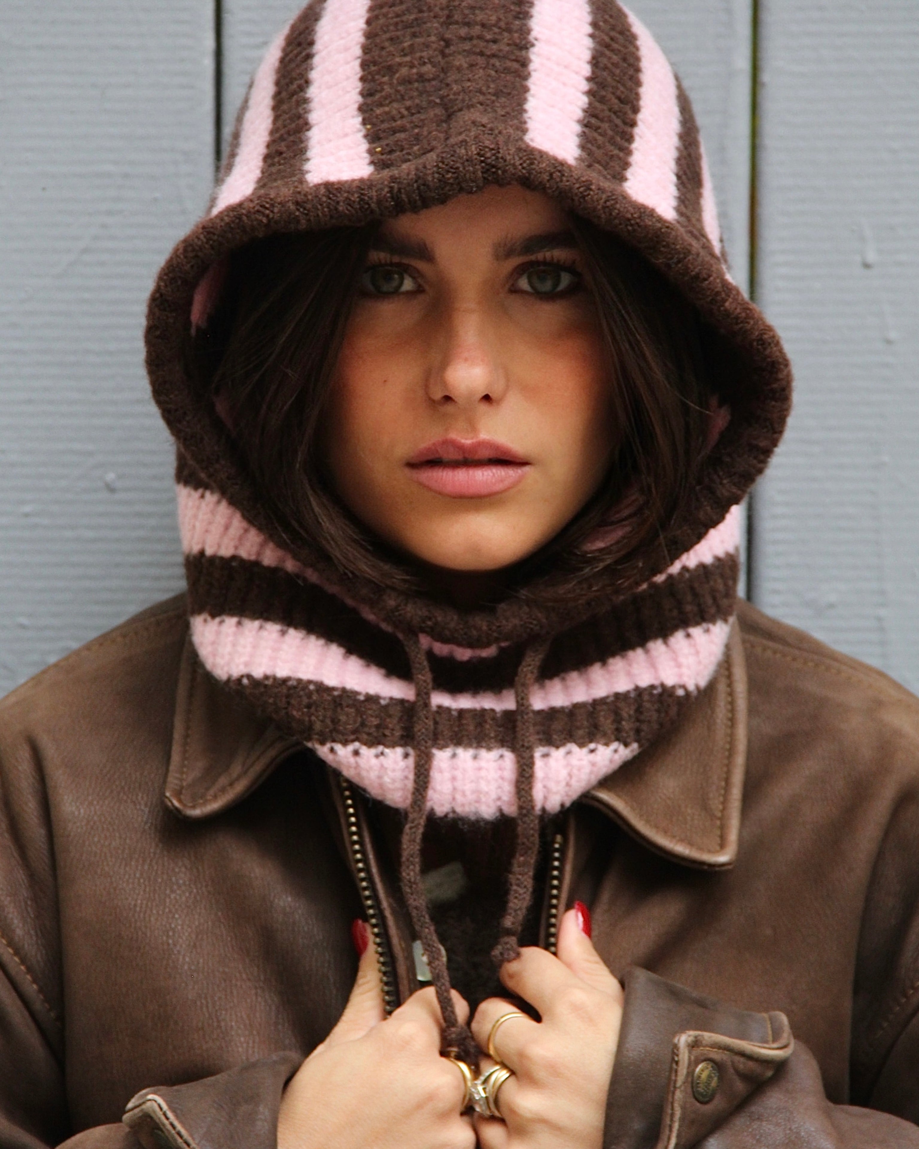 Portées en accessoire comme ici avec notre cagoule en maille rayée, elles apportent immédiatement rythme et caractère à n’importe quel look. Inspirée de l’univers du rétro sport et twistée dans une version douce et graphique, cette pièce illustre parfaitement l’équilibre entre tendance et confort.
