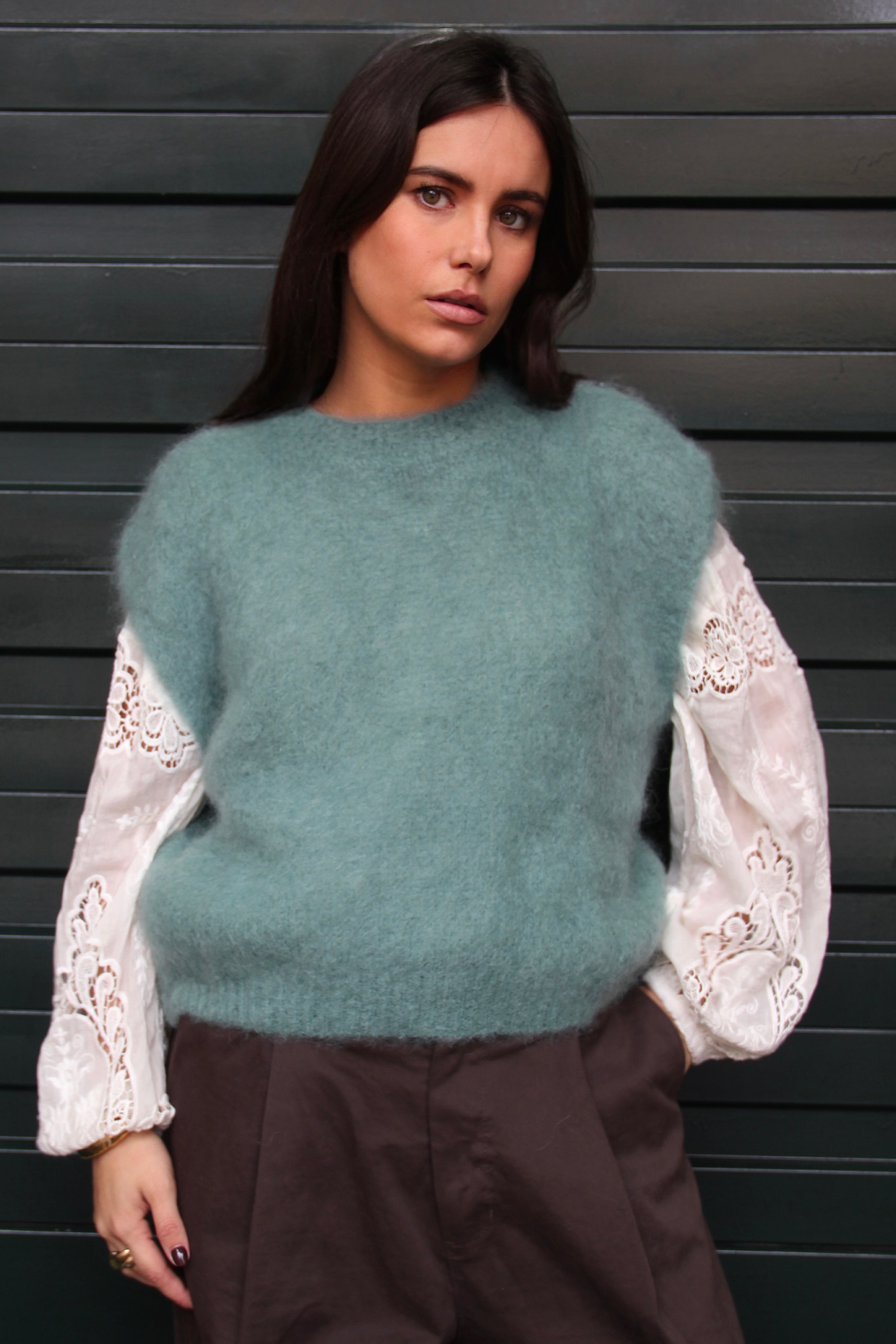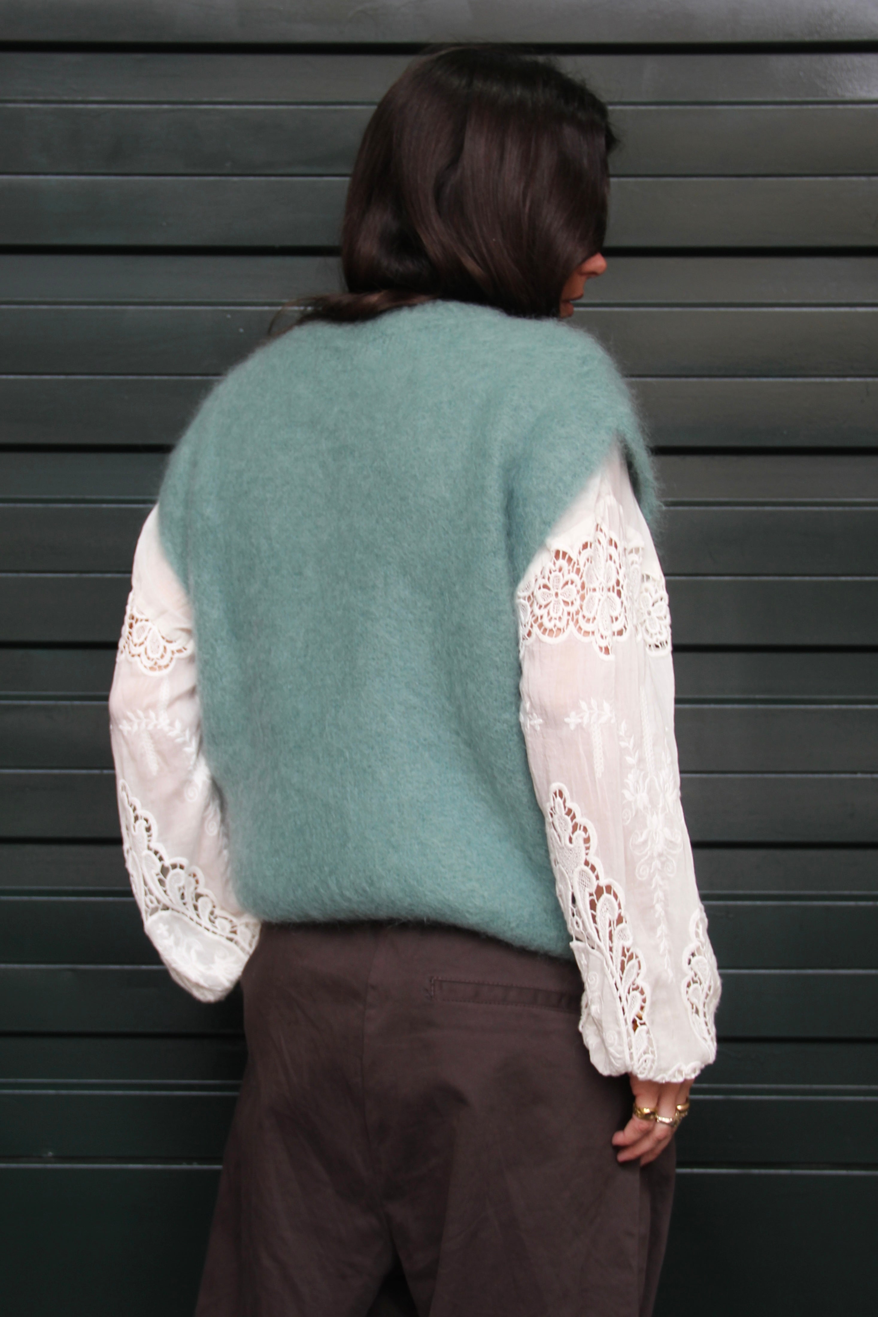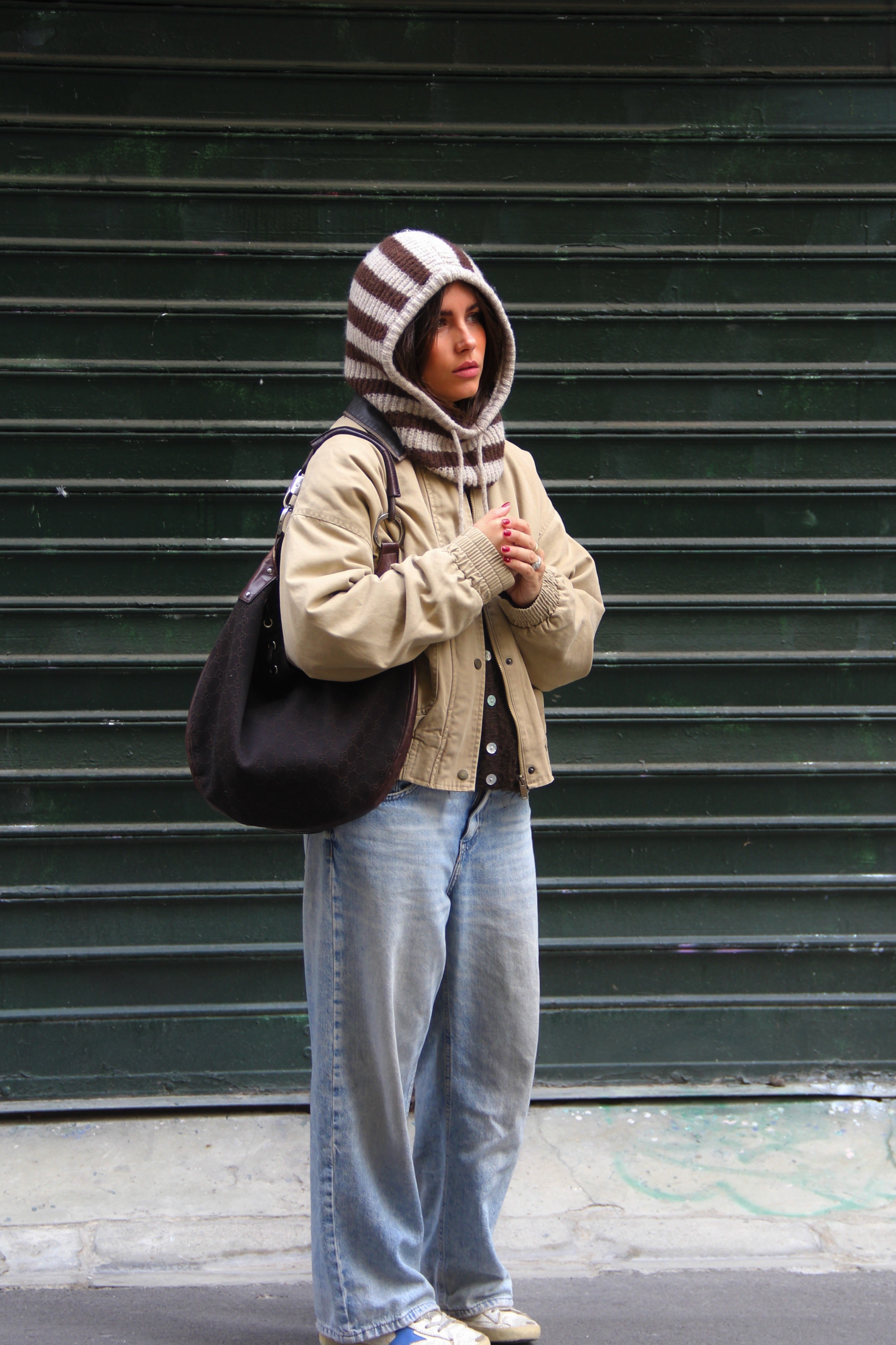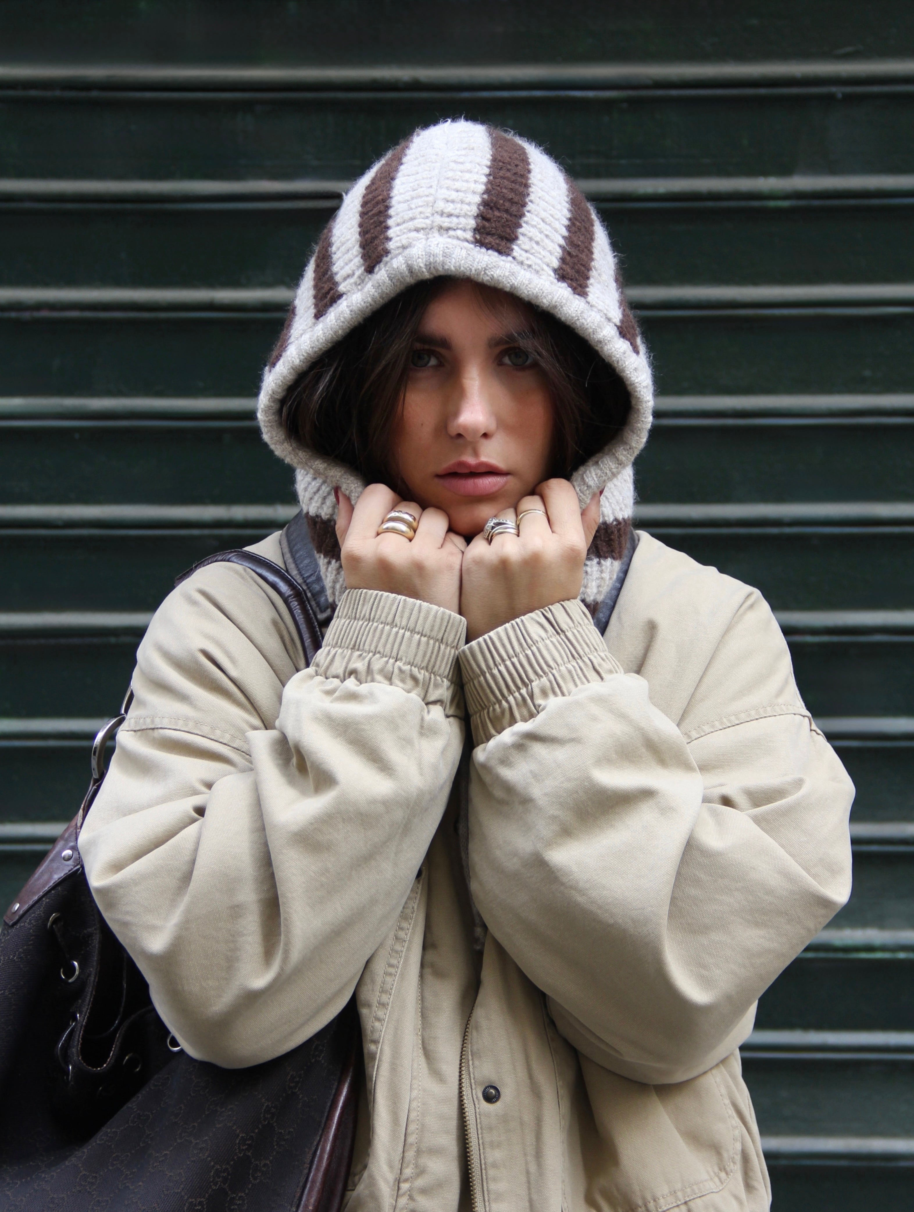 Portées en accessoire comme ici avec notre cagoule en maille rayée, elles apportent immédiatement rythme et caractère à n’importe quel look. Inspirée de l’univers du rétro sport et twistée dans une version douce et graphique, cette pièce illustre parfaitement l’équilibre entre tendance et confort.