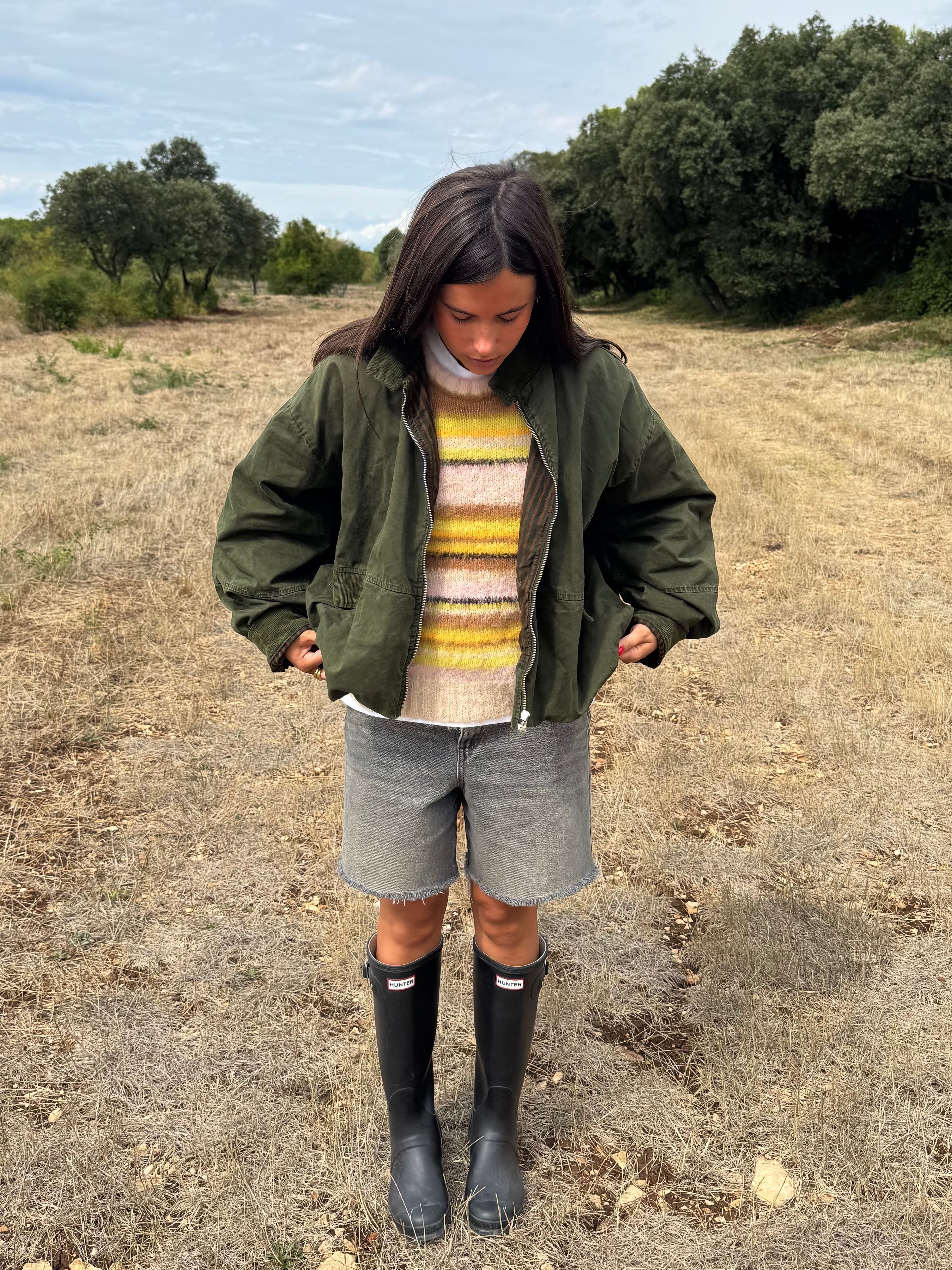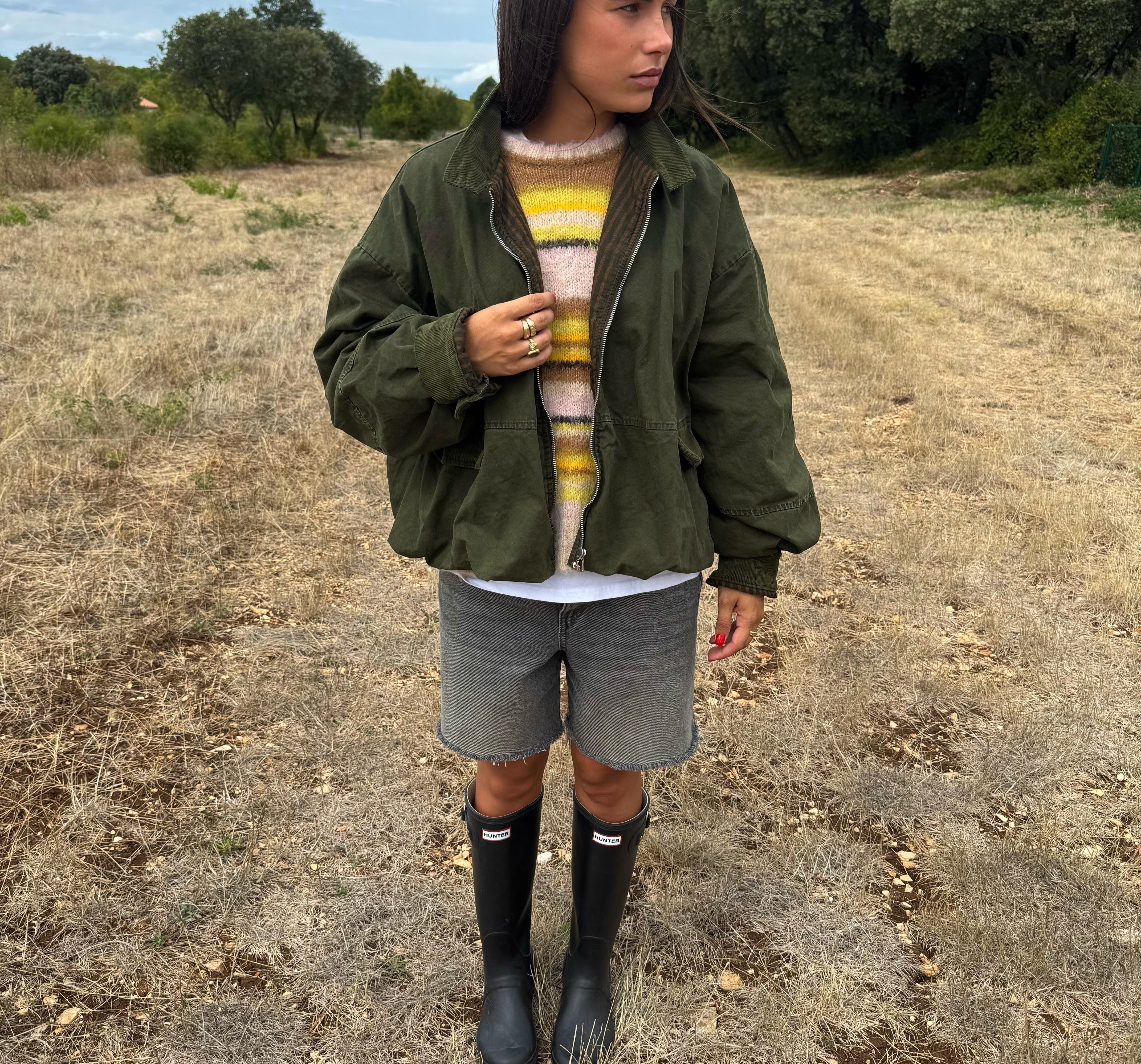 Née de l’inspiration utilitaire et militaire, la veste oversize kaki traverse les époques sans jamais perdre de sa force. Cette saison, on la réinvente pour le quotidien : ample, confortable et terriblement stylée. Elle protège des premiers vents d’automne, tout en affirmant une silhouette moderne et décontractée.