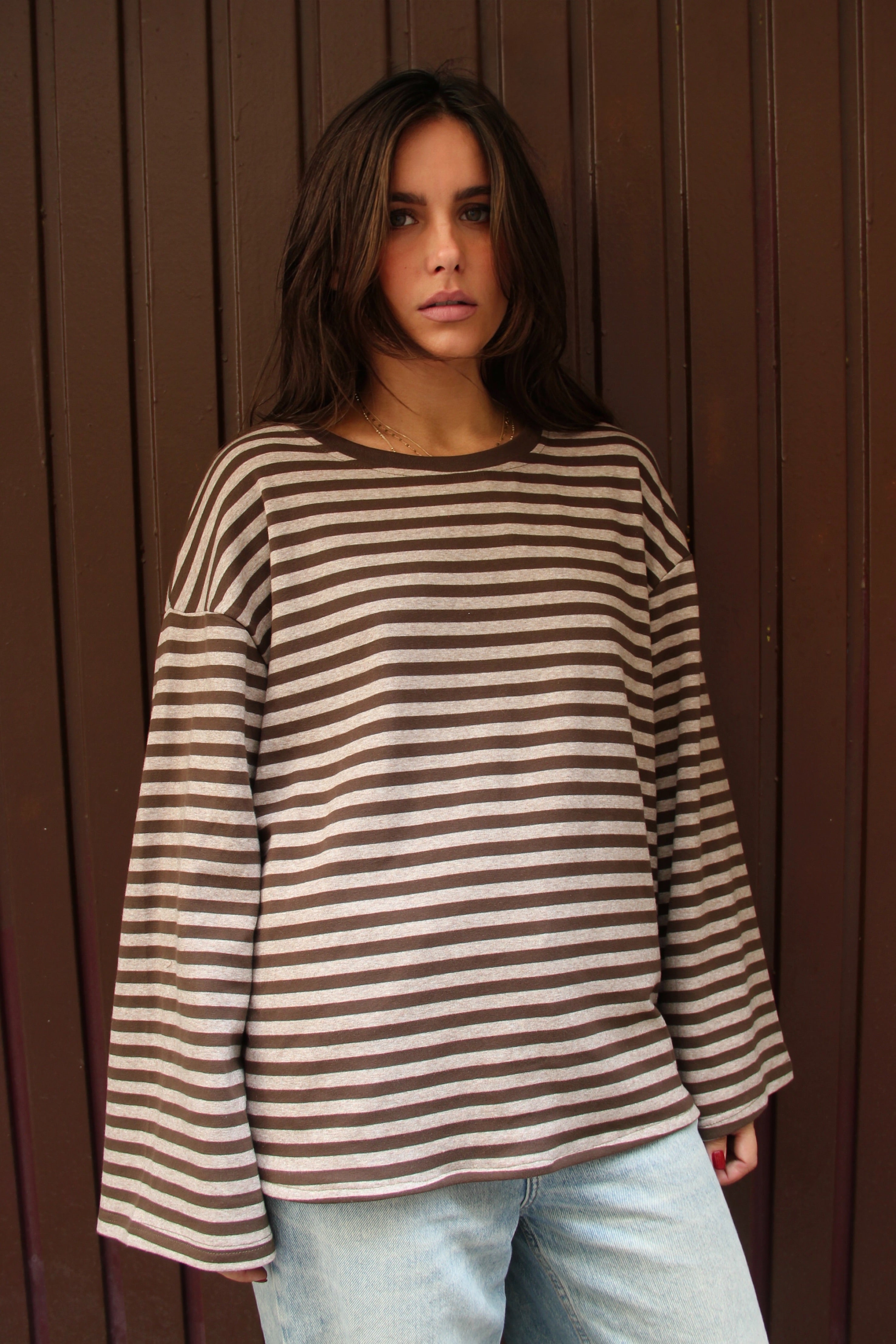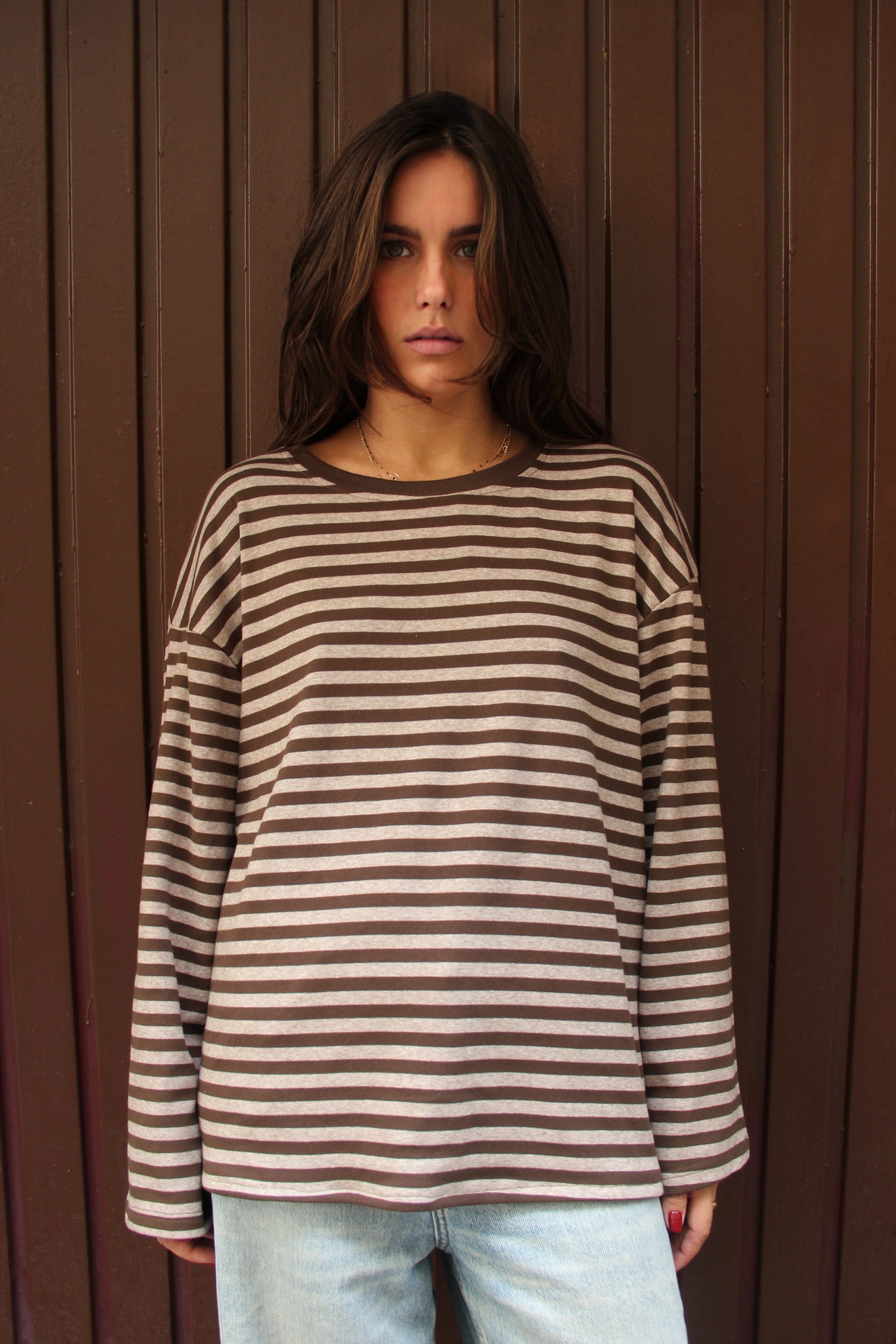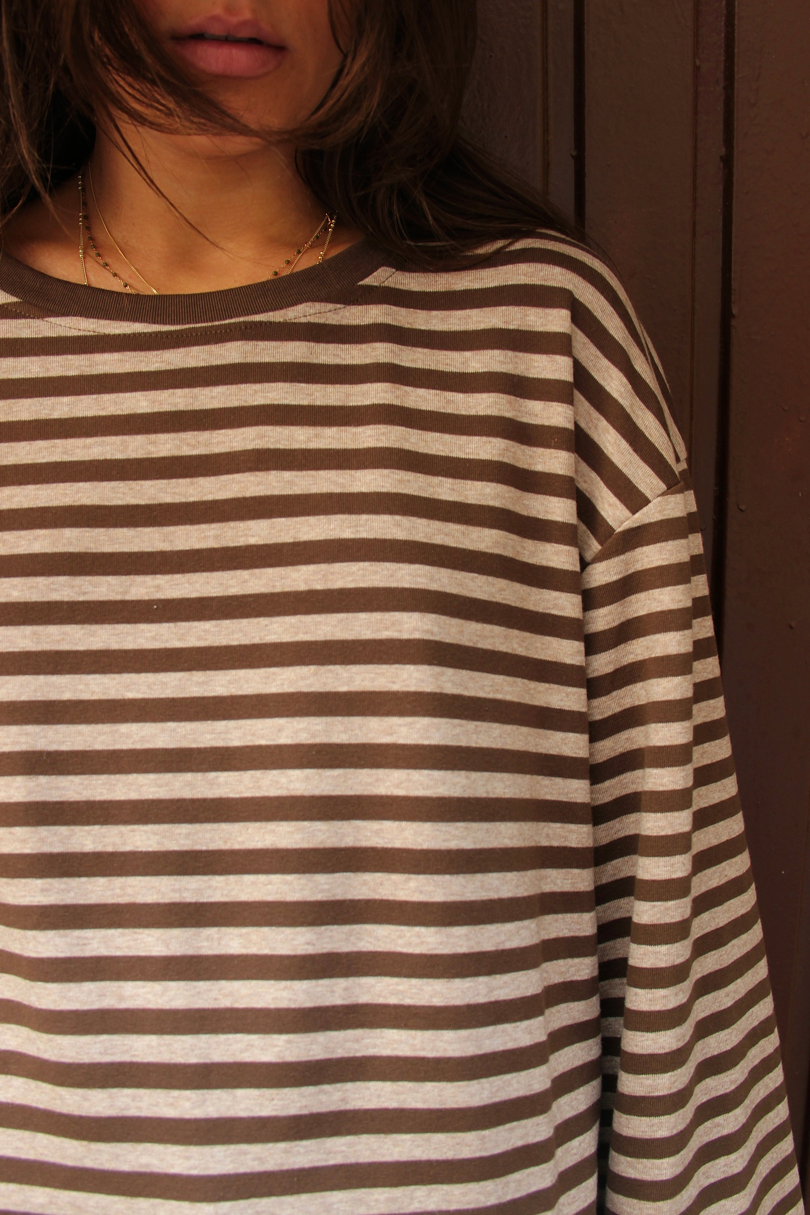 Cette marinière séduit par sa coupe oversize, réalisée en jersey doux (95% coton, 5% élasthanne), elle assure souplesse et tenue parfaite au quotidien. Ses rayures contrastées en font une pièce forte et facile à associer. Taille unique. Le mannequin mesure 1m65.