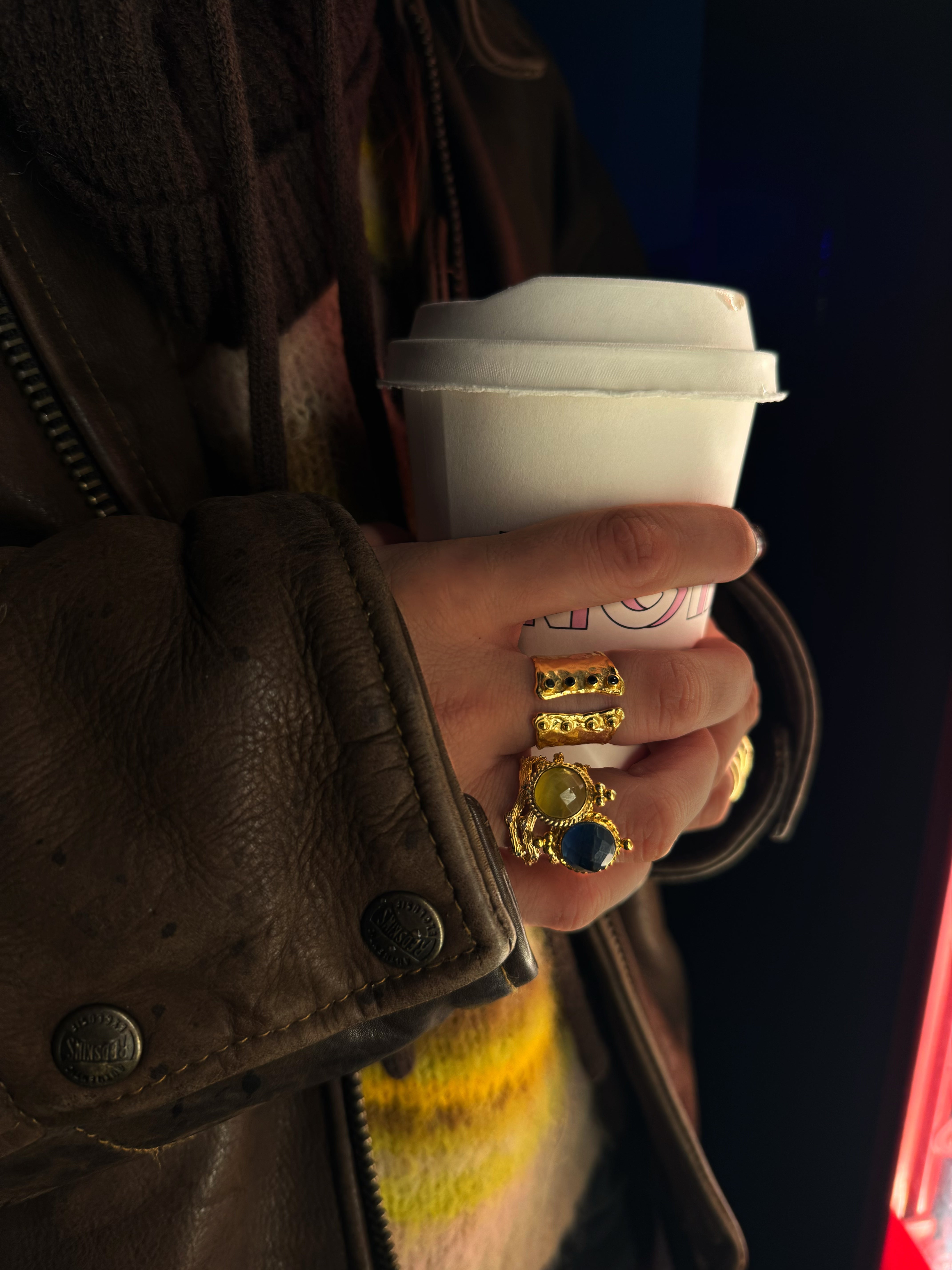 Cette bague en laiton et acier inoxydable allie durabilité et raffinement. Résistante à l’eau et sans risque de décoloration, elle conserve tout son éclat au fil du temps. Son effet irisé capte la lumière avec subtilité, tandis qu’une pierre délicate vient sublimer son design unique. Ajustable, elle s’adapte parfaitement à toutes les tailles.
