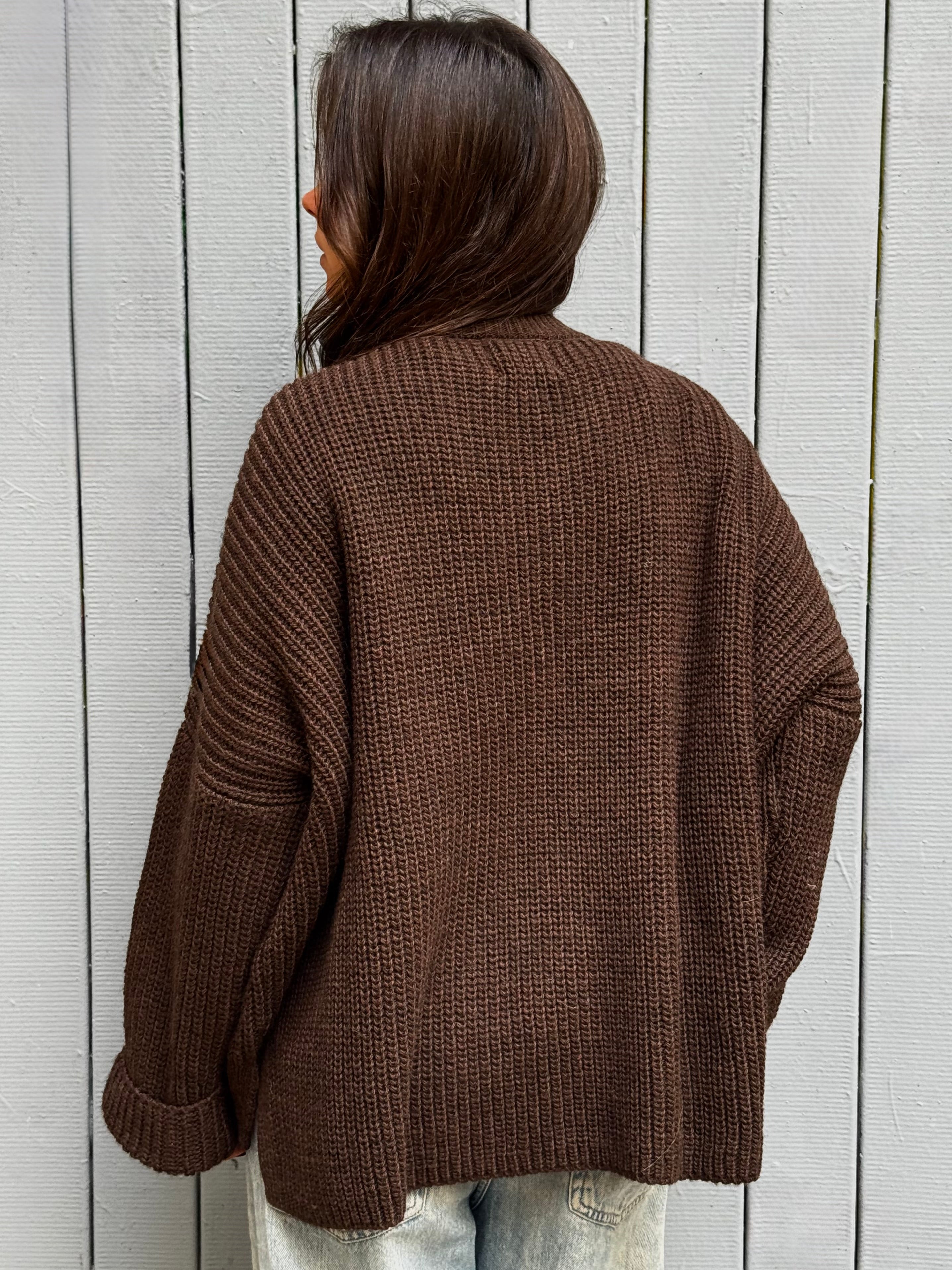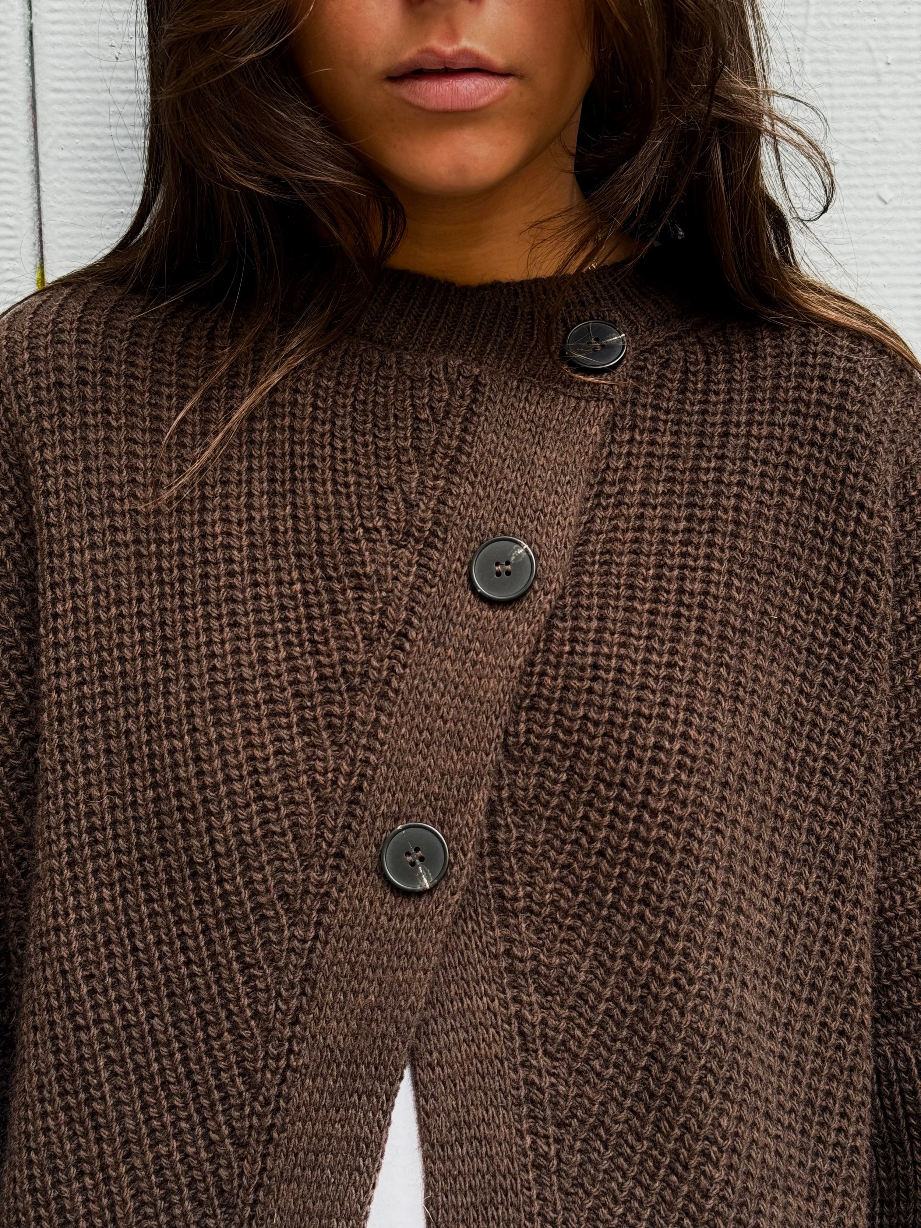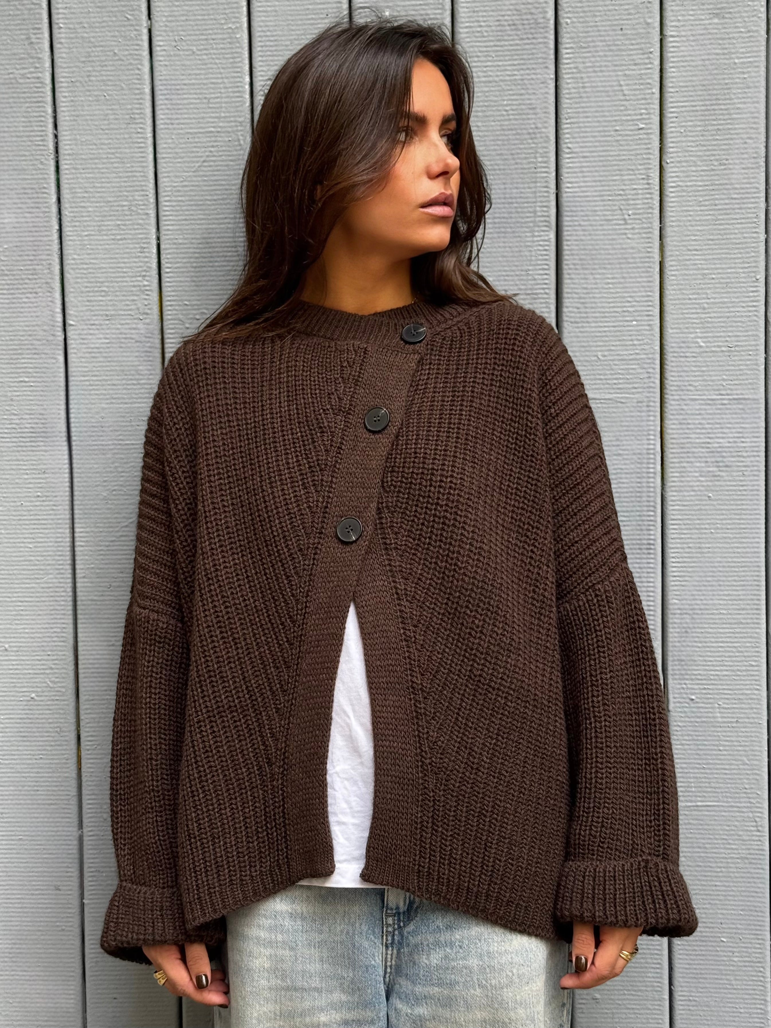 Cardigan oversize en maille épaisse, au tomber souple et à la coupe légèrement ample. Détails de boutons contrastés et finitions côtelées pour un look décontracté et élégant. Taille unique. Le mannequin mesure 1m63.